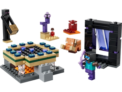 This LEGO® Minecraft playset features an End portal and a Nether portal with functions to access small builds for each biome. Authentic accessories, including an enchanted bow and healing potion, inspire endless creative adventures with familiar scenes and Minecraft characters.
