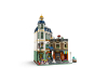 The 3-level building includes a 2-storey music shop with marching-band instruments, and an adjacent furniture shop complete with a counter, stools, table and workshop. The top floor is home to a furnished flat with a bathroom, while a roof garden provides space for potted plants and a pigeon coop. Perfect for home office decor, this model includes 7 minifigures and a modular design with easy access to the interior.