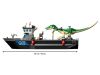 - The boat features a control room that can be lifted off for easy access to the cargo hold, adinosaur cage and a rotating ‘searchlight’. The set also includes a small toy speedboat that floats.