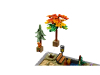 - JARDIN D’AUTOMNE FLAMBOYANT – Le jardin du chalet inclut 4 arbres, des fleurs, un cadran solaire, une niche, une charrette à légumes, un nain de jardin et des créatures du jardin (rouge-gorge, sittelle, écureuil, grenouille et escargot)