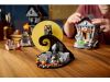 Een speelse LEGO set om tussen je kerstversiering te zetten, inclusief 8 personages uit Tim Burton's The Nightmare Before Christmas: minifiguren van Jack Skellington, Sally, de Kerstman, Rot, Zooi en Rommel, plus Zero de hond en een bouwbare figuur van de Burgemeester met 2 gezichten.
