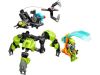Destroy the cocoon with LEGO® Hero Factory BREEZ Flea Machine with grapple hook, dual flick missiles, plus click shooter and jumper.